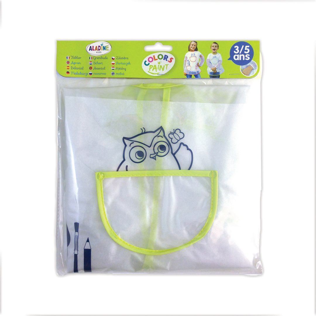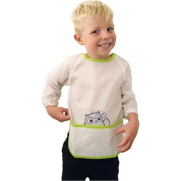 Tablier en plastique illustré indispensable pour initier les petits à la peinture.