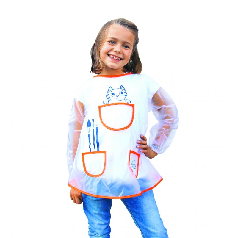 Tablier en plastique illustré indispensable pour initier les petits à la peinture.