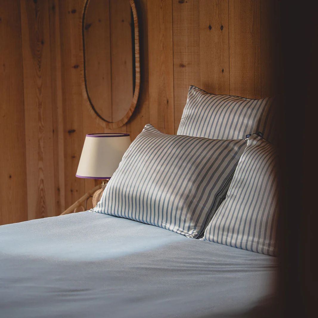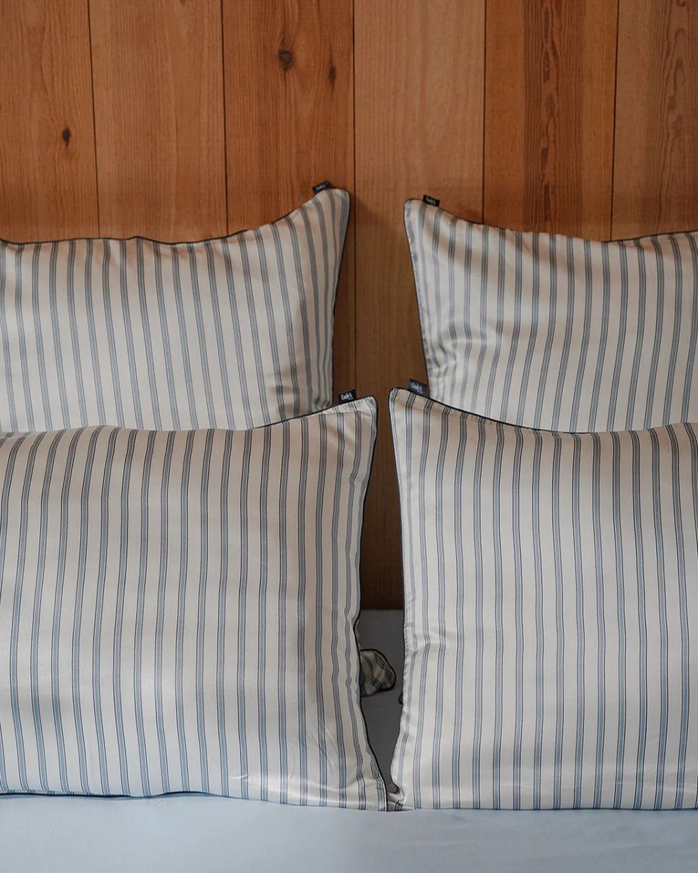 Taie d'oreiller 100% Pure Soie de Mûrier - Rayure fine bleue