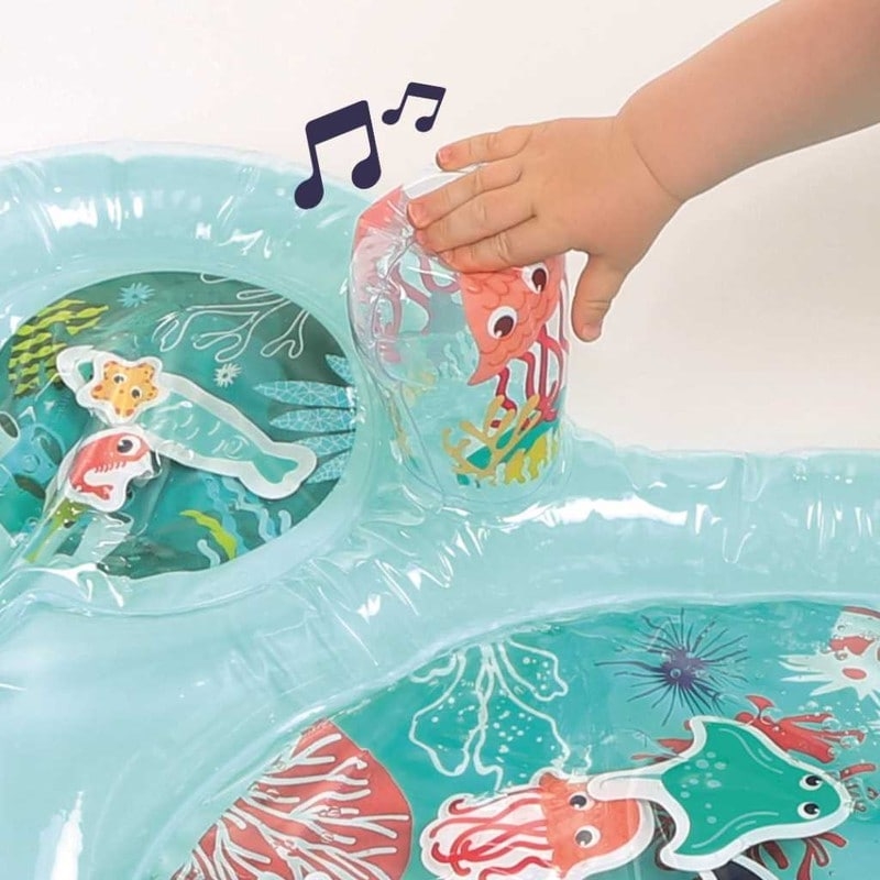 Idéal pour développer la motricité, ce tapis d'éveil va plonger votre enfant au cœur d'un monde aquatique et éveiller tous ses sens !