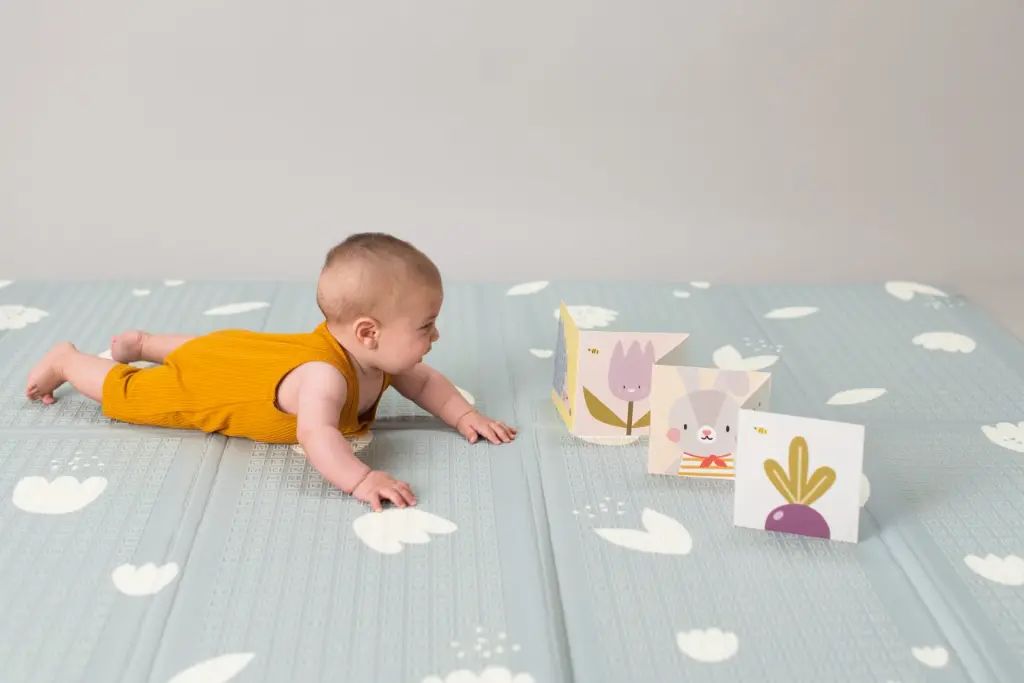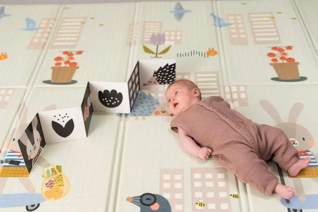 Le tapis d'éveil est accompagné d'un livre de bébé double face pour les deux stades de développement. Peut être utilisé pour jouer sur le ventre ou dans la poussette en déplacement.