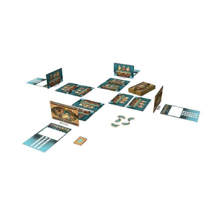 - Contenu : 35 cartes combinaison, 1 bloc de feuille, 5 jetons demi médaillon, 1 jetons premier joueur et 4 supports de carte