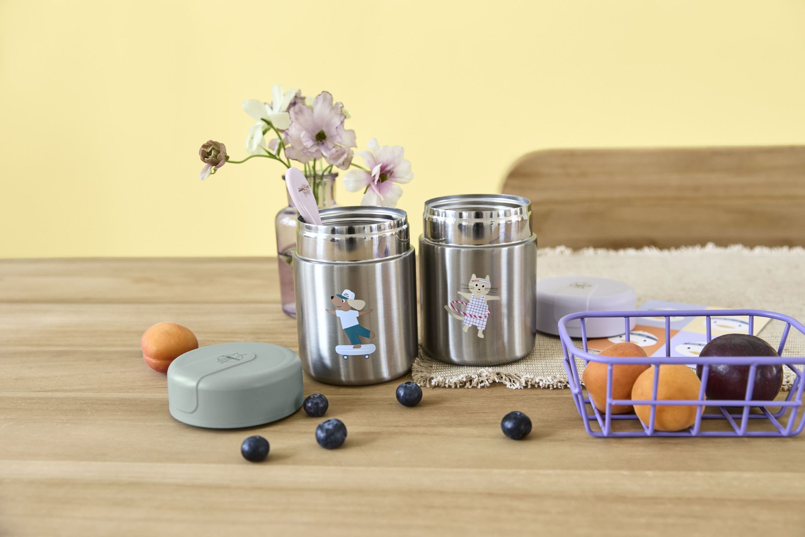 Avec ce thermos pratique de la collection Tiny team de LÄSSIG, le repas de bébé est encore meilleur en balade.