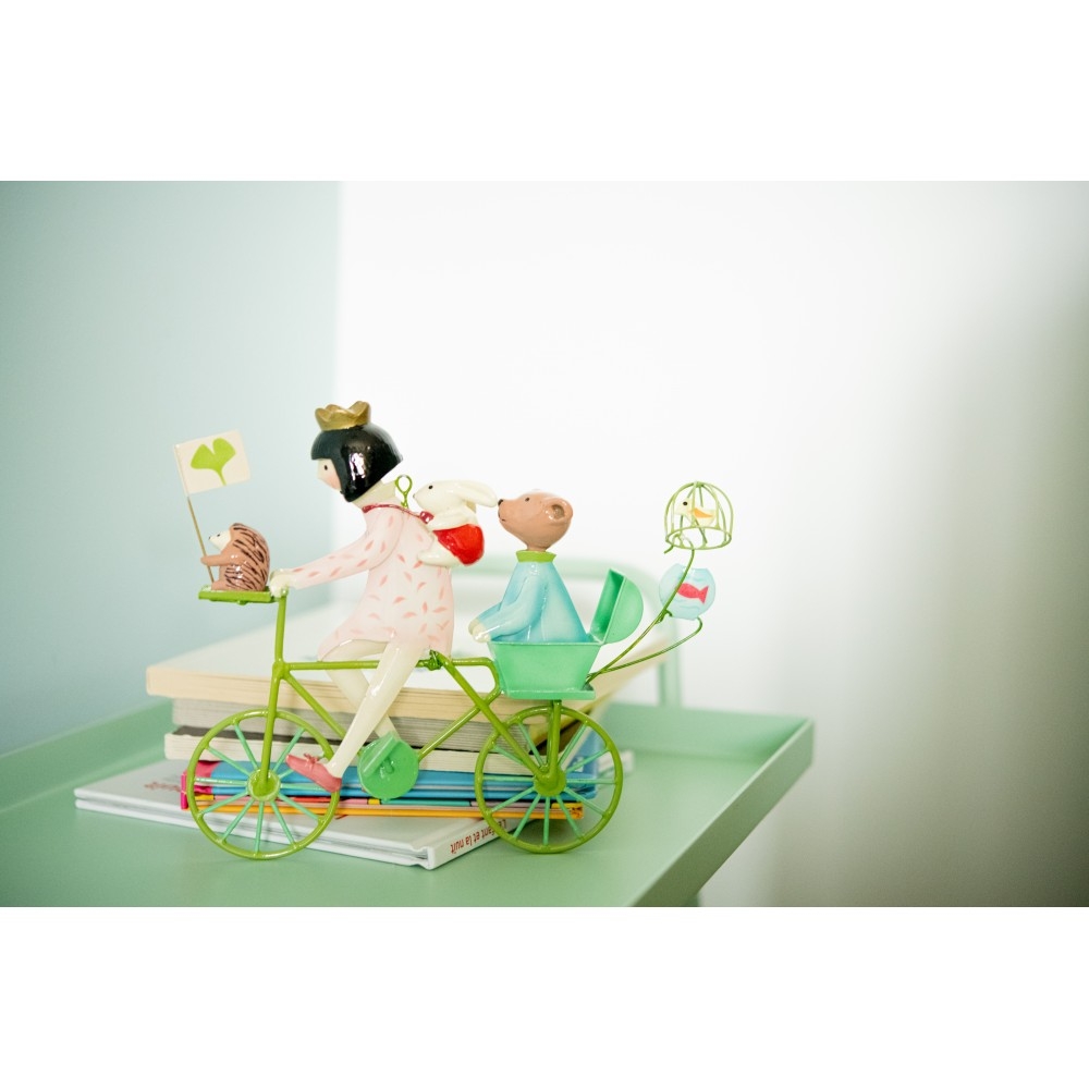 Mobile de décoration en métal à suspendre. En hommage aux triplettes de Belleville et à Jacques Tati, ces drôles de vélos volants sont d'improbables voyageurs en imaginaire.