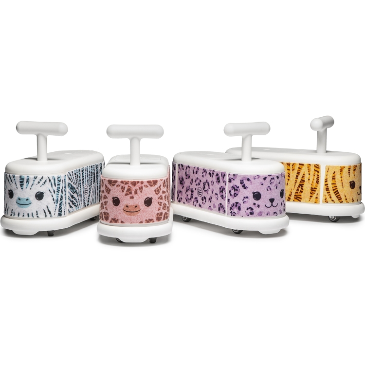 Les trotteurs Italtrike Pigiama sont recouverts de feutre doux, aux motifs inspirés des animaux de la savane.