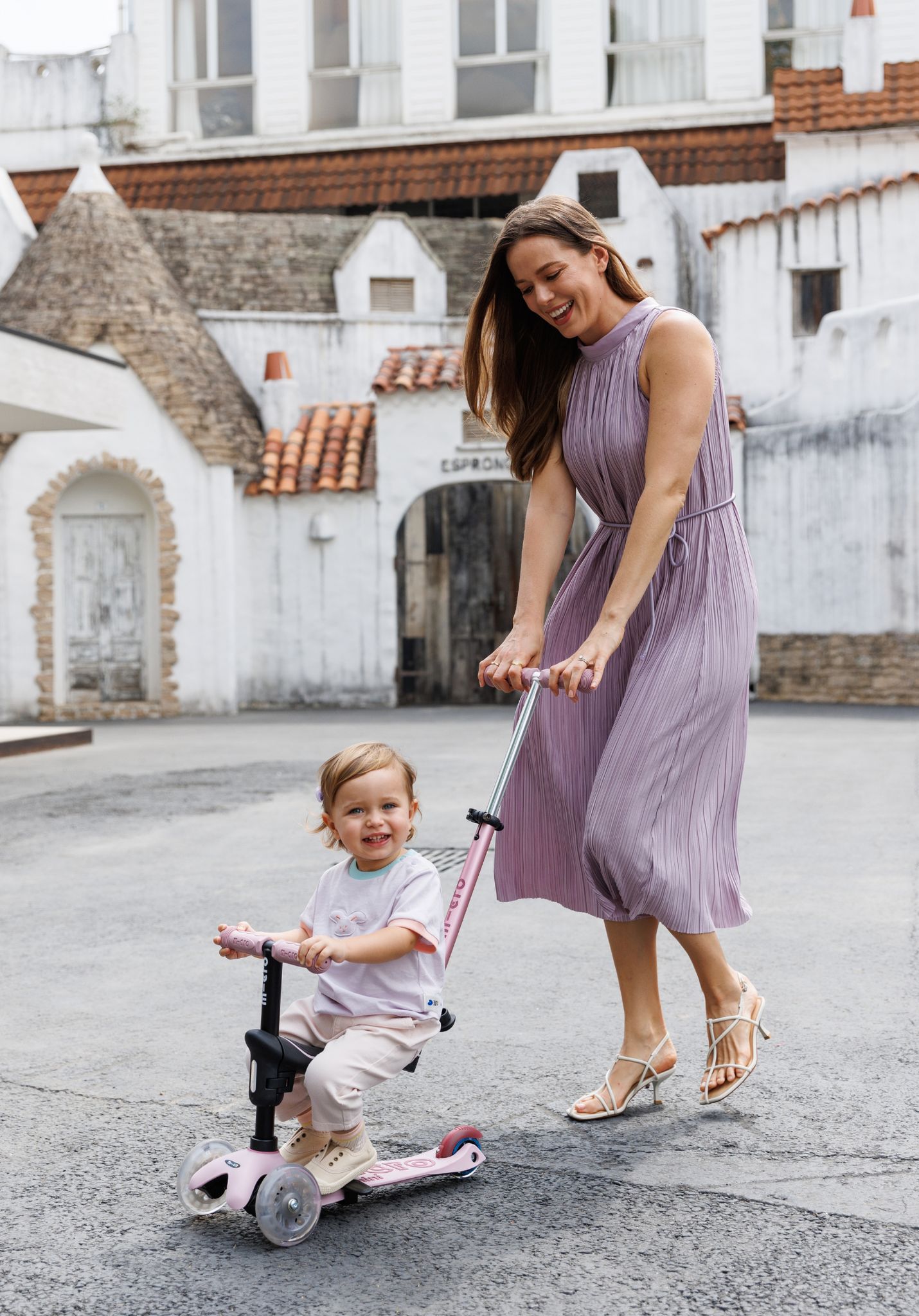 Le scooter 4-en-1 est innovant et ergonomique. Il peut être utilisé de différentes manières suivant l'évolution de votre tout-petit : d'abord assis sur le siège et poussé par les parents avec 2 options de repose-pieds, ensuite sans barre de poussée comme une draisienne et enfin sous forme de trottinette classique comme la Mini Micro Deluxe.