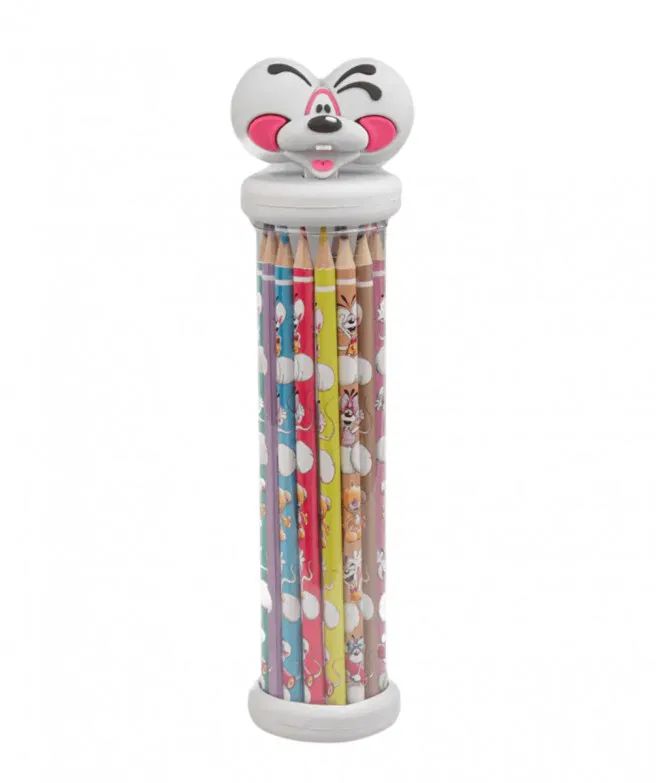 Compact et joliment surmonté de la célèbre souris cette trousse 3D allie style et praticité. Elle contient 12 crayons de couleur soigneusement rangés à l'effigie de Diddl.