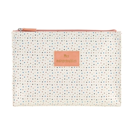 Superbe trousse de la marque Derrière la porte pour ranger tous les produits de beauté. Cette trousse se compose d'une grande poche fourre-tout, séparée en 2 par une poche zippée ainsi qu'une poche cachée.
