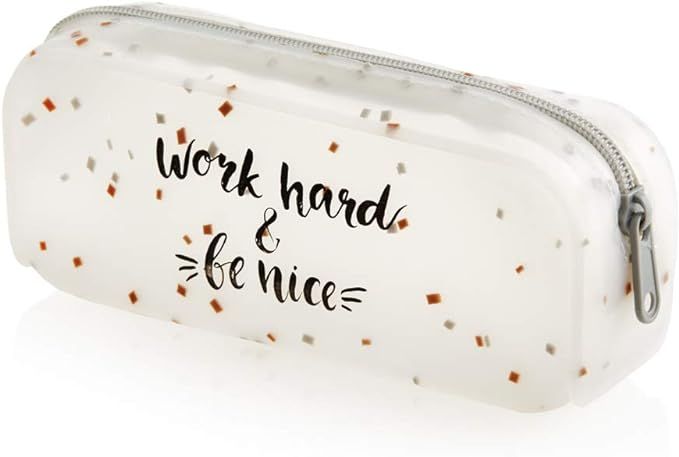 Une jolie trousse translucide en silicone avec un effet pailleté et un message imprimé pour encore plus de fun !