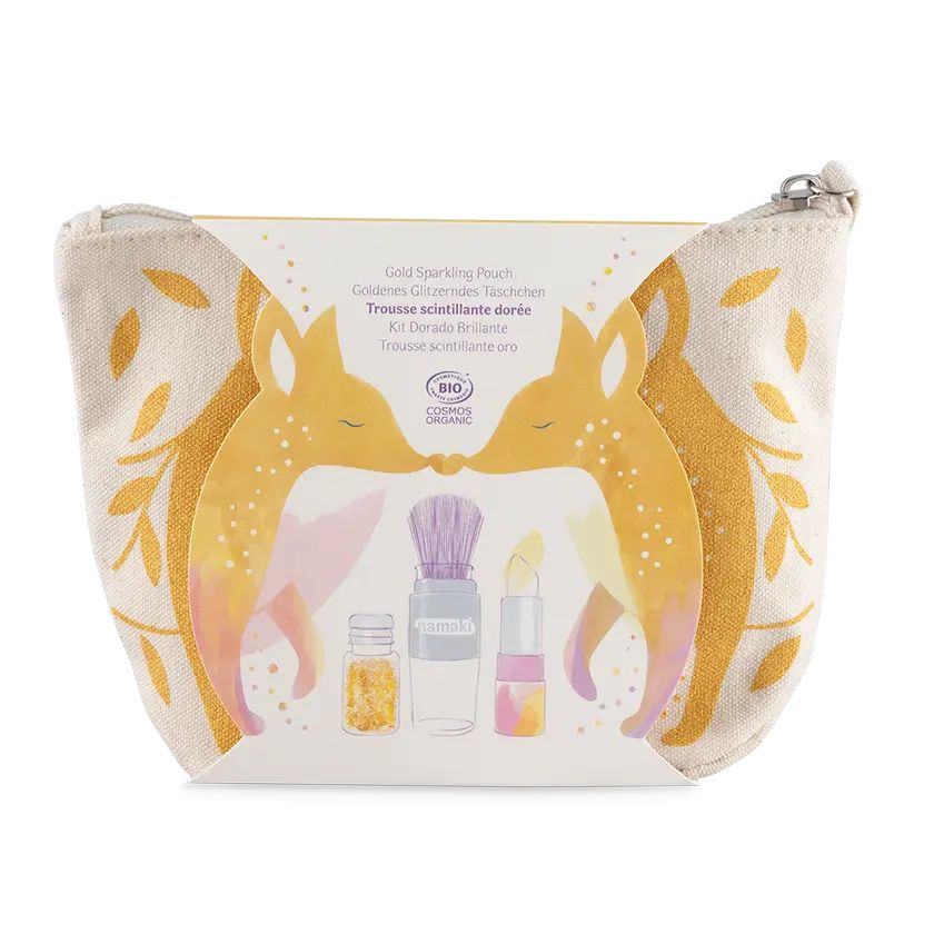 Cette jolie trousse en coton Bio regroupe les produits rêvés pour flamboyer le temps des fêtes.