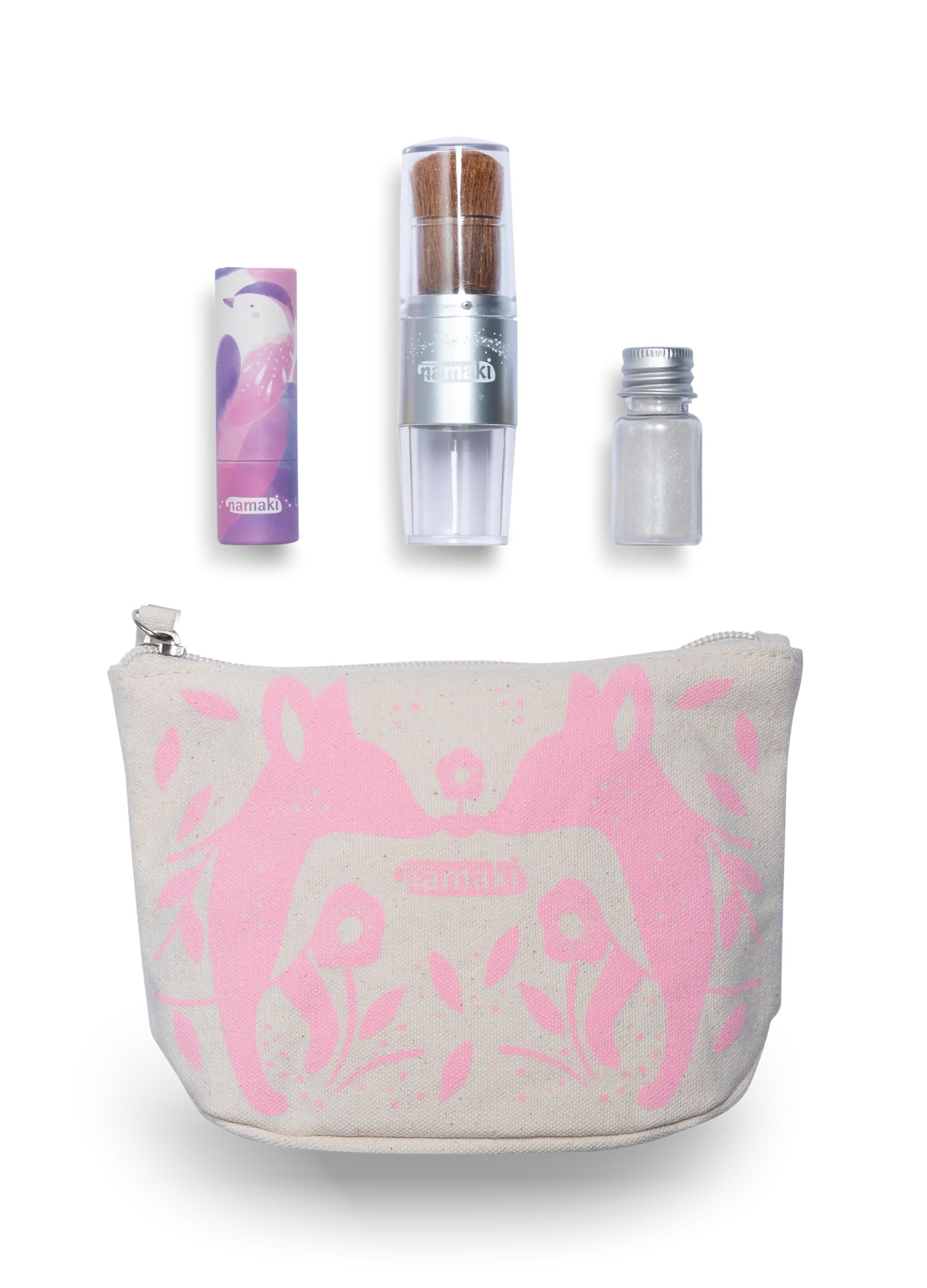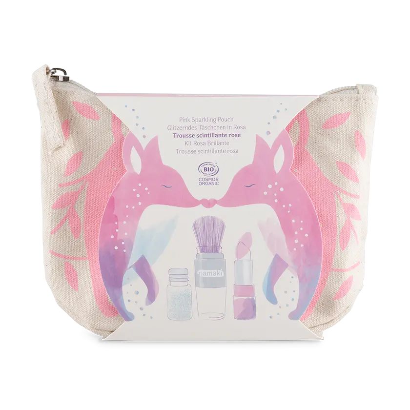 Cette jolie trousse en coton Bio regroupe les produits rêvés pour flamboyer le temps des fêtes.