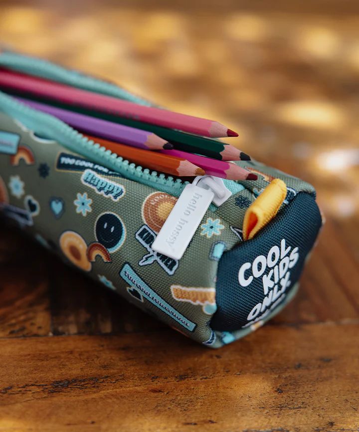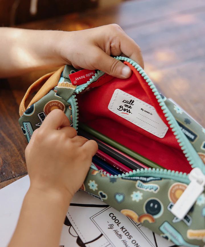 Une trousse avec un joli imprimé smiley, fabriquée à partir de bouteilles en plastique recyclées.