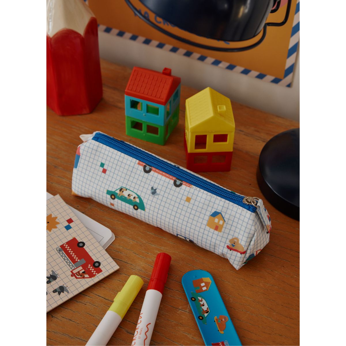 Cette jolie trousse aux motifs de véhicules et chiens va ravir les enfants !
