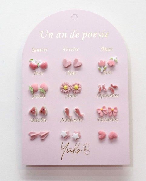 Une carte de 12 paires de boucles conçues spécialement pour les oreilles percées, chacune ornée d'un motif unique. Cette gamme vous permettra de changer de style au gré de vos humeurs tout au long de l'année et d'ajouter une dose de poésie à votre quotidien.