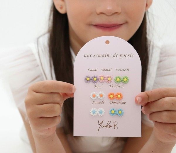 Une carte de 7 paires de boucles conçues spécialement pour les oreilles percées, chacune ornée d'un motif floral unique. Cette gamme vous permettra de changer de style au gré de vos humeurs tout au long de la semaine et d'ajouter une dose de poésie à votre quotidien.