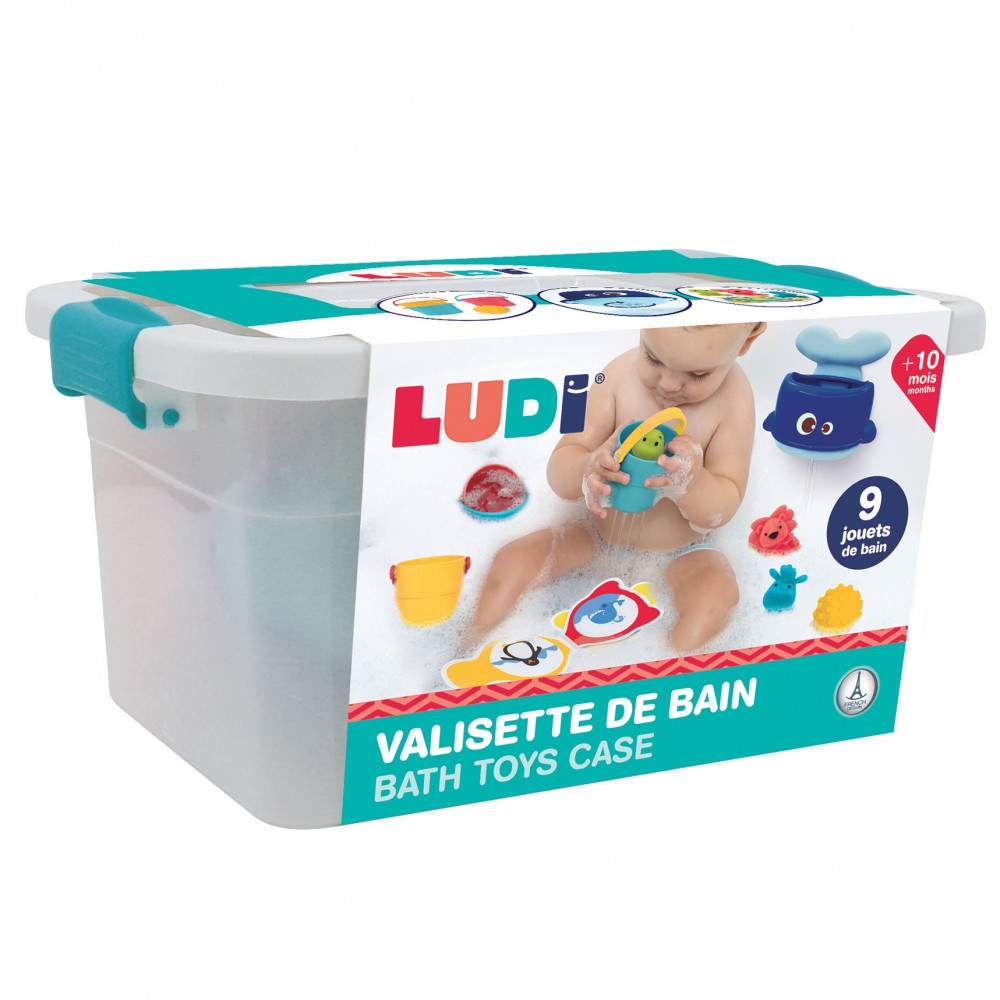 Les valisettes de bain LUDI proposent un florilège de petits jouets d'eau pour s'inventer de belles aventures. Retrouvez des jouets légers et colorés de tous genres : livre de bain, aspergeurs, petit circuit d'eau… Il y en aura pour tous les goûts !