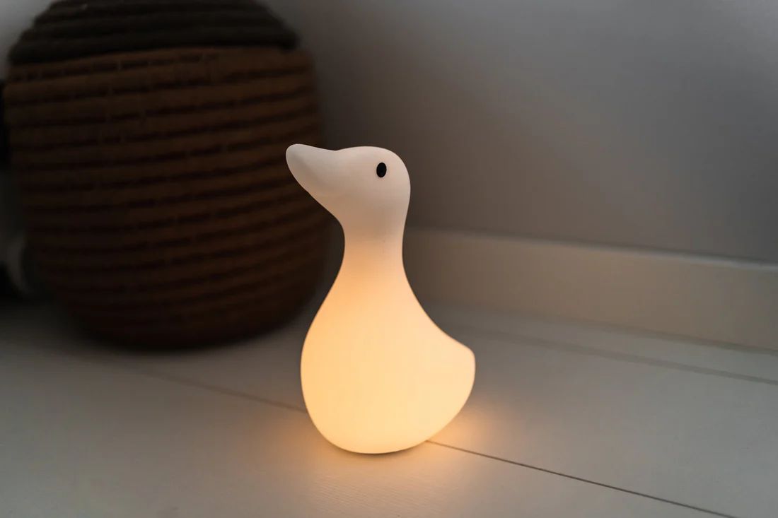 Cette veilleuse LED en forme d'oie est rechargeable par USB et change de couleur en tapotant sur son dos.