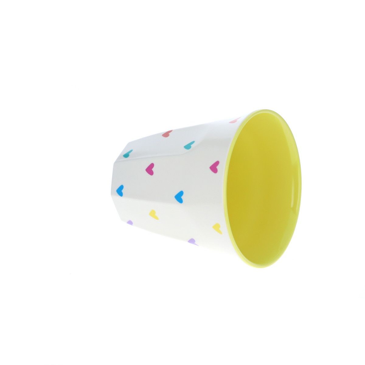 - Couleur : beige avec cœurs multicolores, intérieur jaune