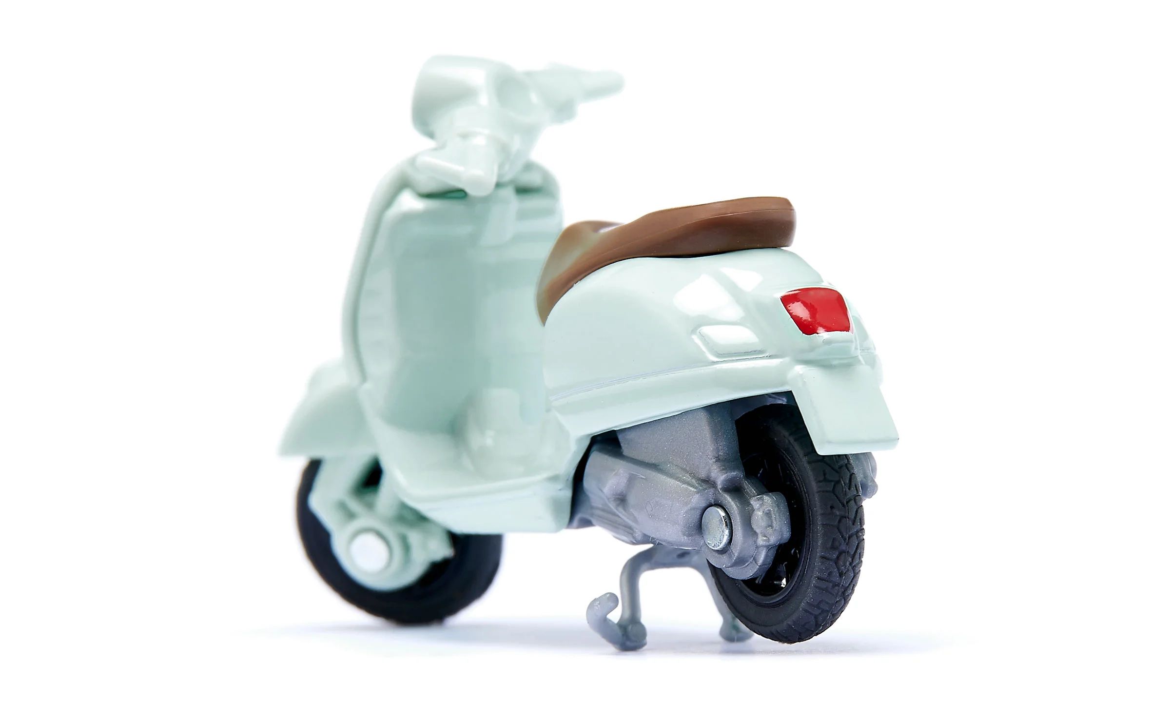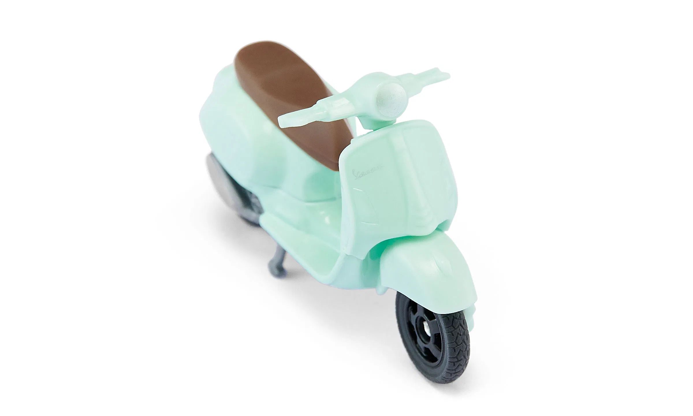 Aucun autre deux roues n'évoque autant la « Dolce Vita » que la Vespa. L'icône italienne culte et sa légendaire pétarade transportent l'atmosphère unique de l'Italie jusque dans la chambre d'enfant. La Vespa 125 GTS fait l'unanimité des fans, même en modèle réduit : bien entendu avec son profil original et marquant, car chaque petit détail - de la carrosserie métallique de haute qualité aux phares et aux pneus caoutchouc - est une reproduction précise de l'original. Le guidon et la béquille de ce petit bijou vert menthe sont mobiles et lui confèrent une sensation de conduite réaliste. Sur le siège marron, il y a de la place pour deux, ce qui permet de profiter encore mieux des villes idylliques, des villages endormis et des paysages sans fin...
