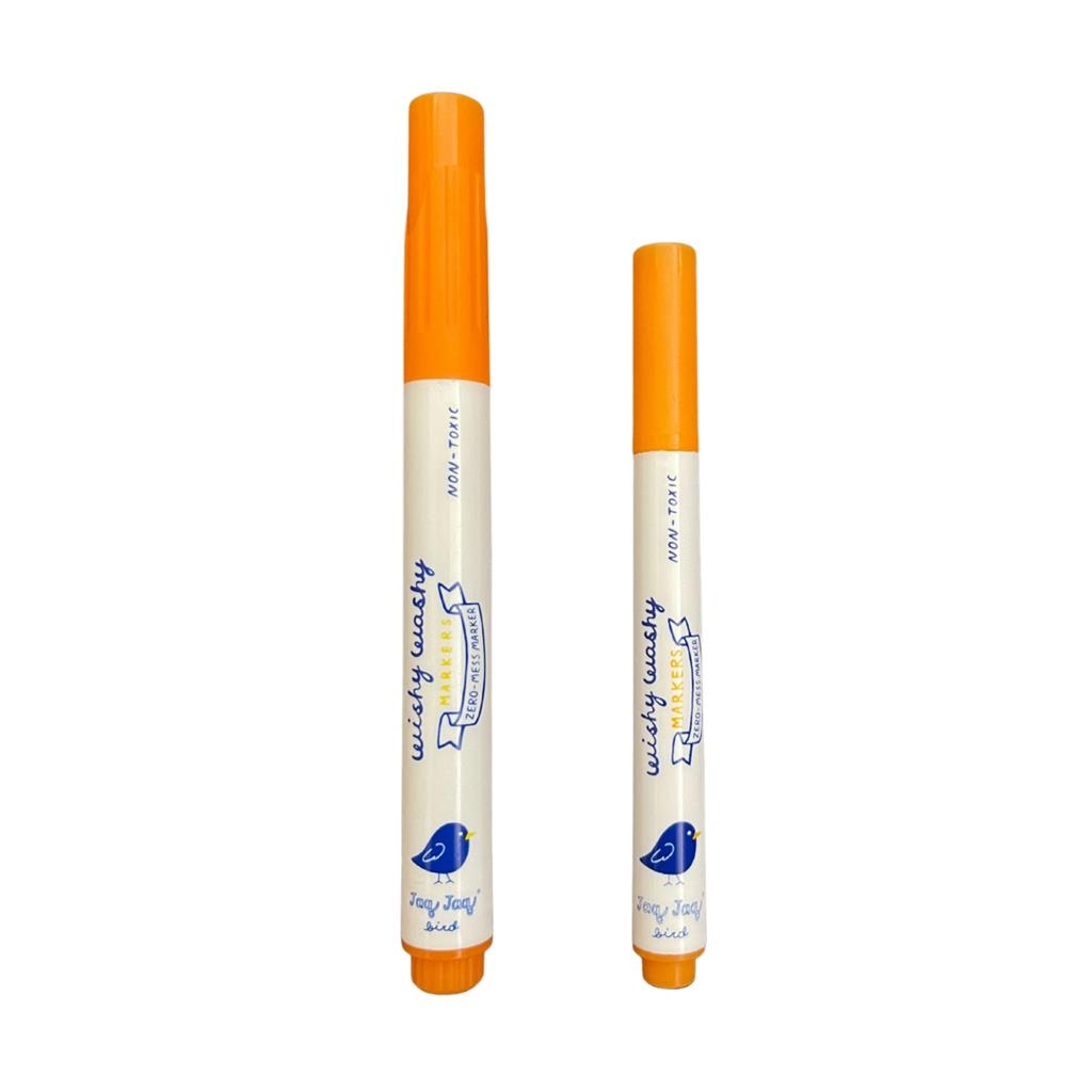 Le set de marqueurs Wishy Washy contient 12 couleurs: rouge, violet, jaune, orange, noir, vert foncé et vert clair, bleu foncé et bleu clair, rose, gris et blanc. Attention, il s'agit des marqueurs minis.
